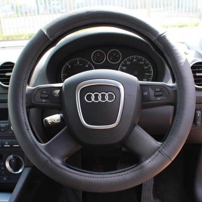 Our universal leather steering wheel cover is perfect for someone trying to make their ride more enjoyable and improve their comfort. Simply slip the steering wheel cover on to the steering wheel.