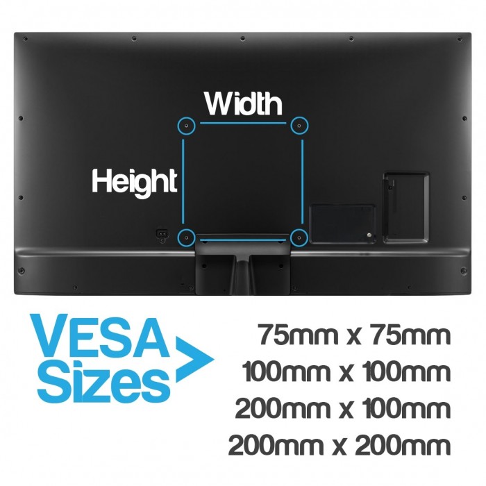 - Fits VESA 75mm x 75mm - 100mm x 100mm, 200 x 100m and 200mm x 200mm fittings