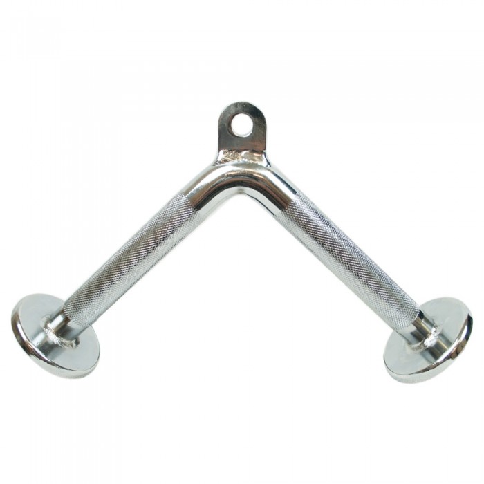Any gym goer knows it s triceps that make the arm look big. With this Tricep V Bar you can target the tricep in one smooth motion. It s made of solid steel with a chromed finish. The bar can be used on most gym systems with a universal cable attachment. Product dimensions: approximately 33x18cm Specifications / Features: Heavy duty push down bar for use with cable stack equipment Isolates the triceps Strength and endurance guarantee Made from stainless steel with knurled grip Finished in chrome plating Heavy Duty Tricep Push Down Bar for use with cable machines In The Box: 1x Tricep bar