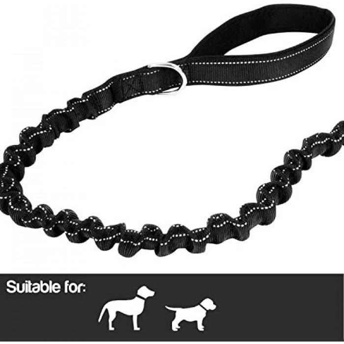 Anti Shock Dog Training Lead Traffic Handle Black Bungee Leash No Pull Puppy