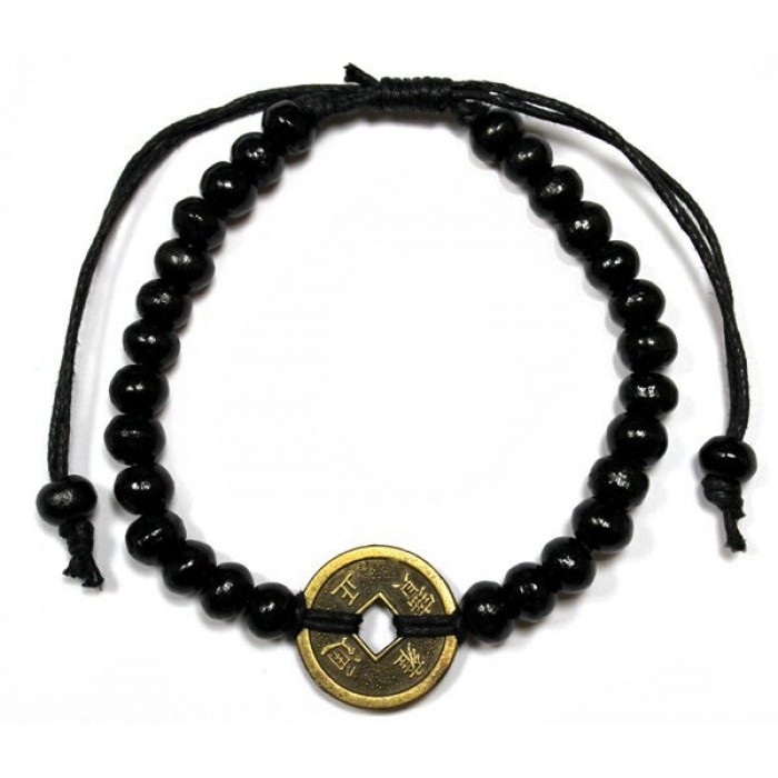 Good Luck Feng Shui Bracelets are made from wood beads and coins of Fortune.