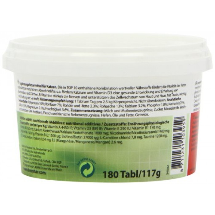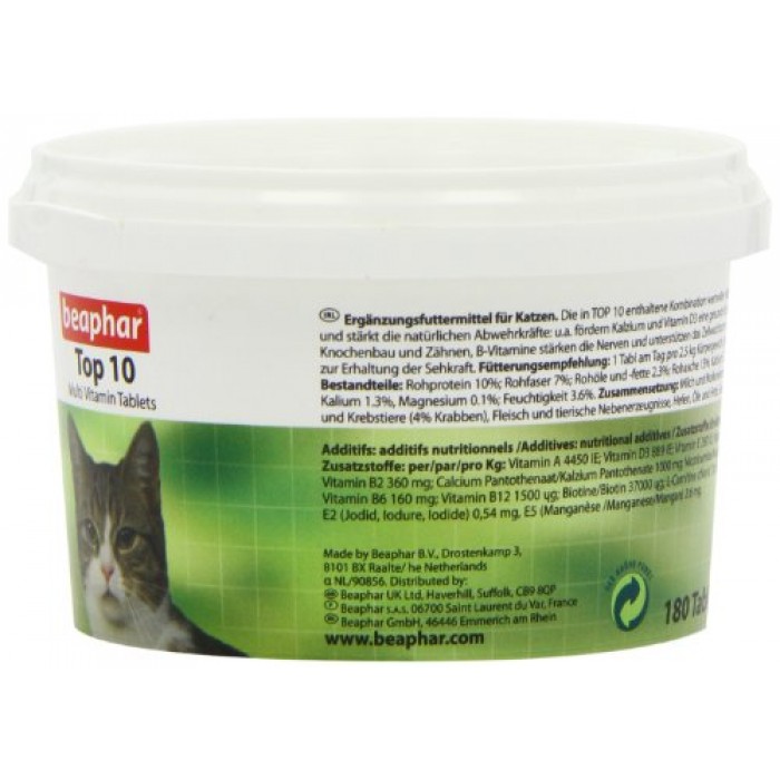 Beaphar Top 10 Cat Vitamin 180 Tablets Food Supplement For Cats Fish Flavour