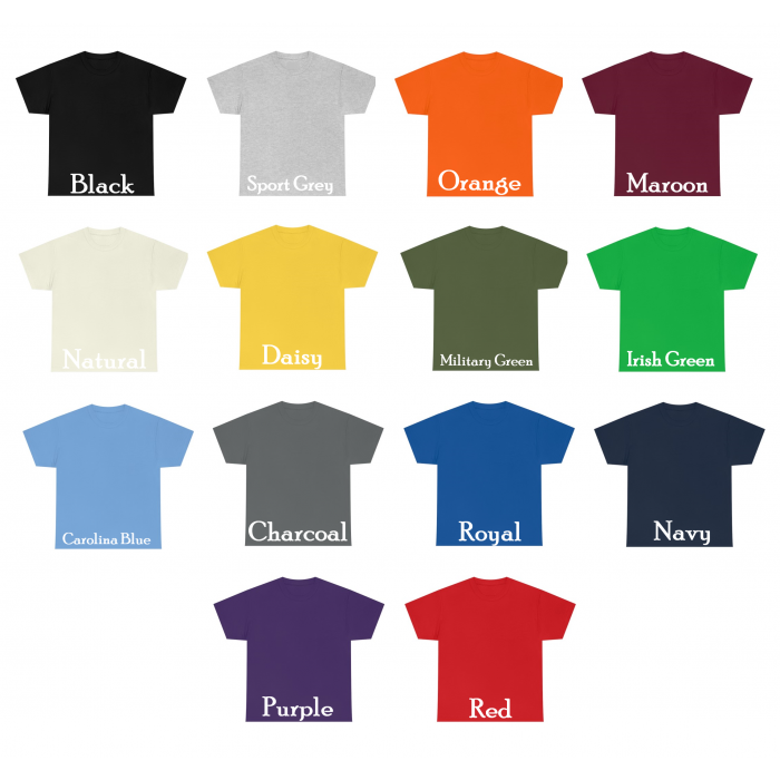 The unisex heavy cotton tee is the basic staple of any wardrobe. It is the foundation upon which casual fashion grows. The specially spun fibers provide a smooth surface for premium printing vividity and sharpness. No side seams mean there are no itchy interruptions under the arms. The shoulders have tape for improved durability.