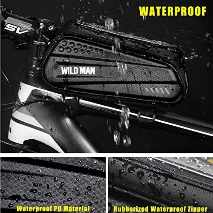 Bike Frame Bag with Mobile Phone Holder, Bicycle Top Tube Pouch, Waterproof Cycle Cell Phone Mount with Touch Screen Window, for iPhone Samsung Smart Phone up to 6.5 inch