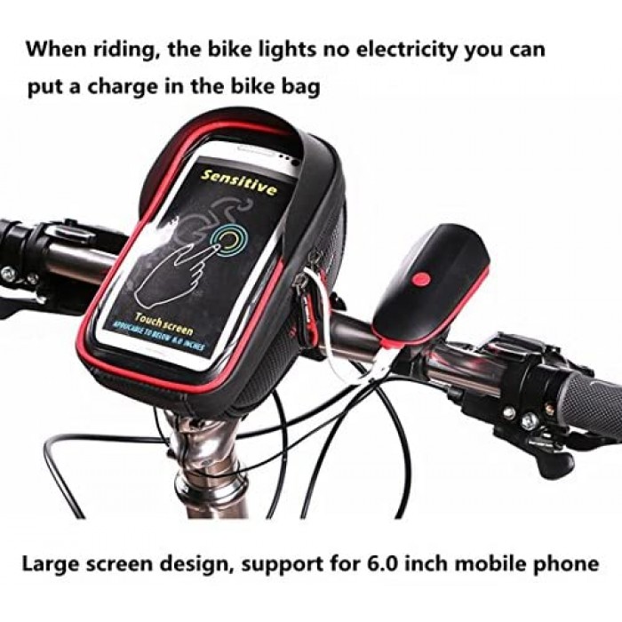 Bike Handlebar Bag, Bicycle Phone Mount, Waterproof Cycling Frame Top Tube Pouch Pannier Bike Phone Holder Stand for iPhone XS MAX XR X 8 7 6 6S Plus Samsung S9 LG Sony Smartphone up to 6 Inch
