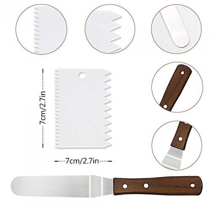 - What You Get: Your package will come with 1 pcs cake decorating turntable, 3 pcs cake scrappers, 2 pcs stainless steel spatulas (6-inch ).