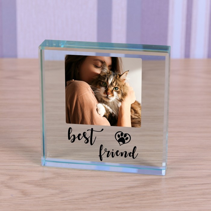 The perfect gift for anyone who loves their pet. Made from premium glass it looks stunning as an ornament but can also be used as a paperweight. Personalise with a favourite photo to make a beautiful gift and keepsake. Supplied in a lovely organza gift bag. (Size 90 x 90 x 20mm)