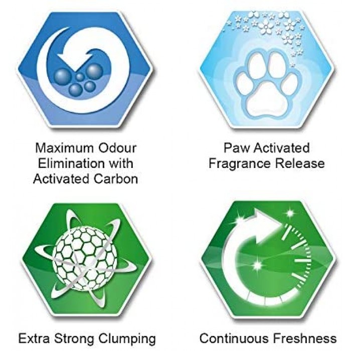 Ever Clean Extra Strong Clumping Cat Litter Scented reduces crumbling, resulting in extra strong, easy-to-remove clumps with a cat litter scoop. This high absorbent premium clumping cat litter with paw activated fragrance releases a fresh scent when the cat litter tray is in use. Made with superior clumping clay, it traps, locks and eliminates odour from urine and faeces through activated carbon technology. Keep your home and your litter tray fresh and create an environment of wellbeing for your cat.