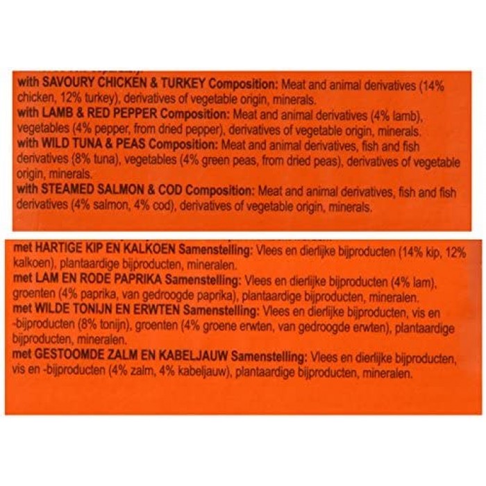 Protein: 9.2%, Fat content: 4.8%, Crude Ash: 1.4%, Crude Fibres: 0.4%, Moisture: 79.3%.