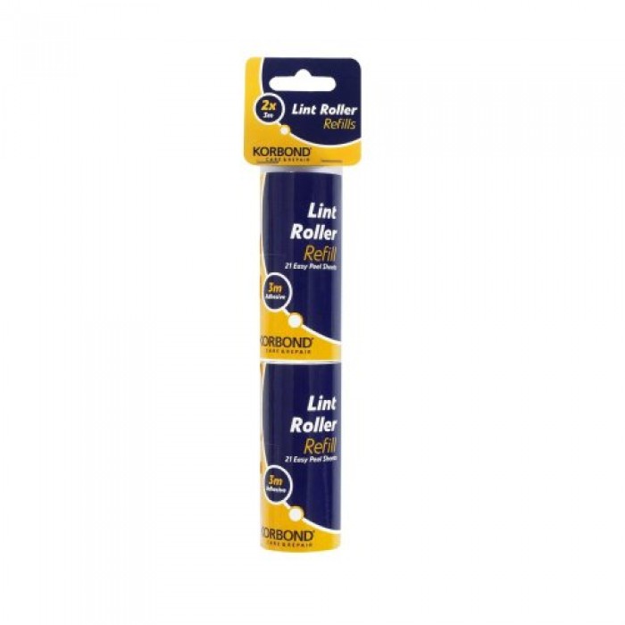 Korbonds twin pack of lint roller refills compliments the Korbond Lint Roller, providing two spiral wound refills of 21 sheets (3 metre) ensuring you never run out