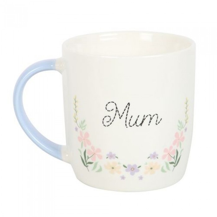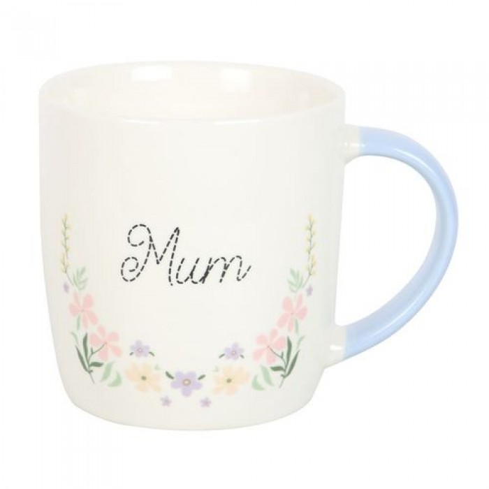 Adorned with a design of spring flowers, 'Mum' text and a pastel blue handle, this mug will brighten Mum's day with every sip.