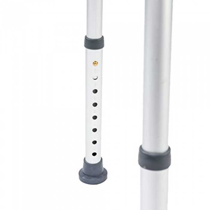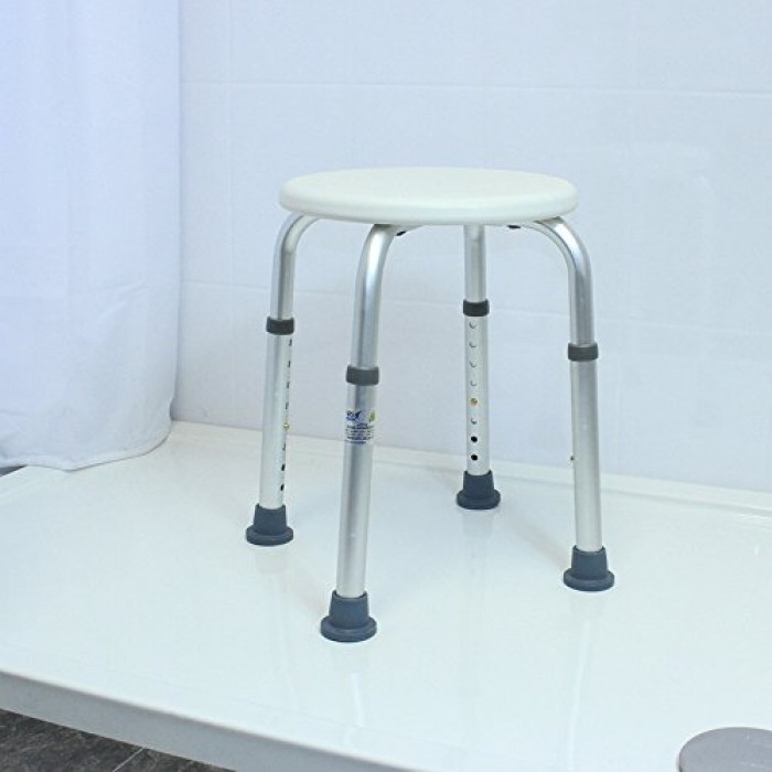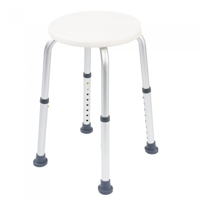The stool is highly durable with a strong moulded plastic seat that is comfortable to sit on. The round seat measures 325 mm in diameter and has a textured surface that gives slip resistance when you're seated. The stool has strengthened aluminum legs that adjust easily in increments between 356 mm and 534 mm (14"-21"). It is very easy to adjust the height by simply pushing in the snap buttons on each leg, then sliding the leg extensions up or down the frame tube to the adjustment hole to the height you need, then let the button pop back out through the hole in each leg. Non-slip rubber ferrule feet ensure the stool doesn't slip on the shower or wet room floor.