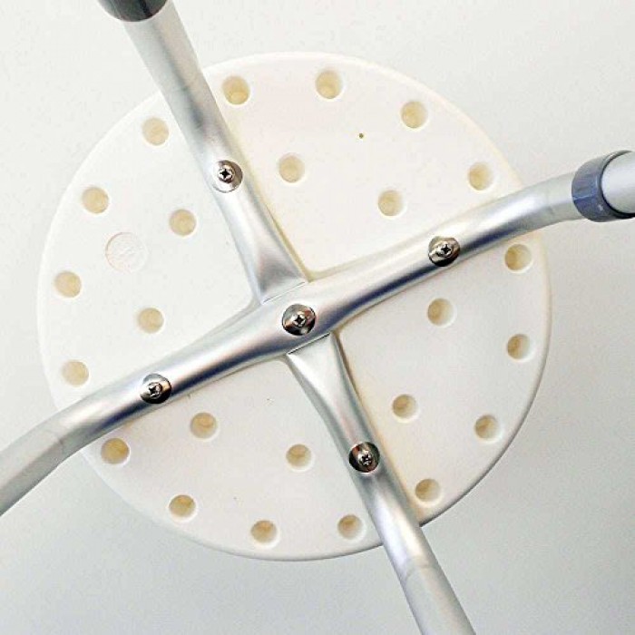 The stool is supplied flat packed. Some assembly is required using a screwdriver (not included) but this is easy to do. The stool weighs 1 kg (2.2lb) and can be easily taken apart for portability and travel use if required. The overall floor space (footprint) needed to fit the stool is 38.5cm (15") in length and 38.5cm (15") in width (as it is designed to fit inside a standard shower cubicle 82cm (32") square). The maximum user weight limit for this product is 136 kg (21 stone) and if your weight is above this, the product is unsuitable. Please check that this product is suitable for your individual needs, with a seat diameter of 32.5cm (12.5"). The design of this product with the legs 'crossing' under the seat helps add to the stability of the shower stool. The aluminium frame resists rust.