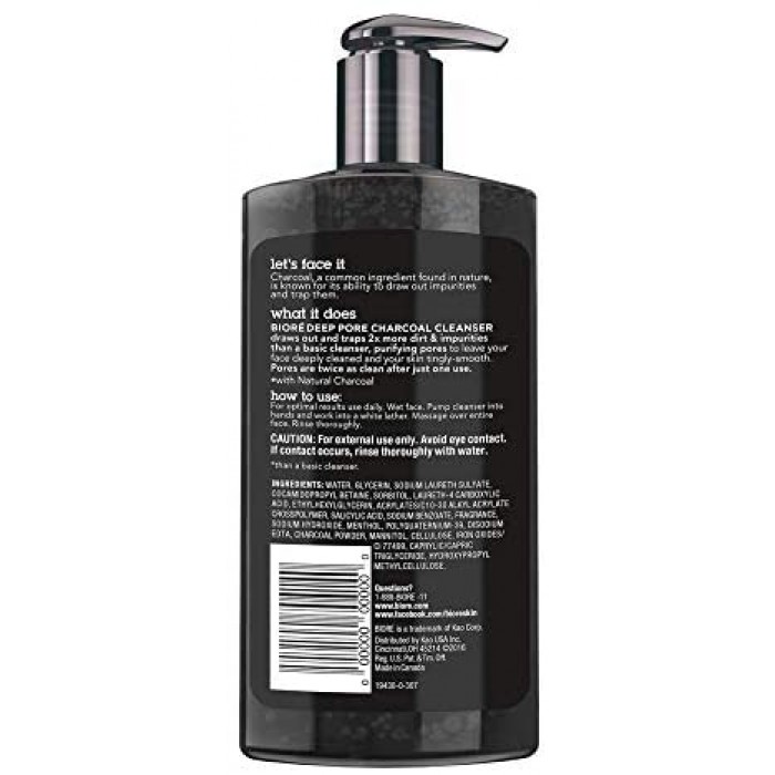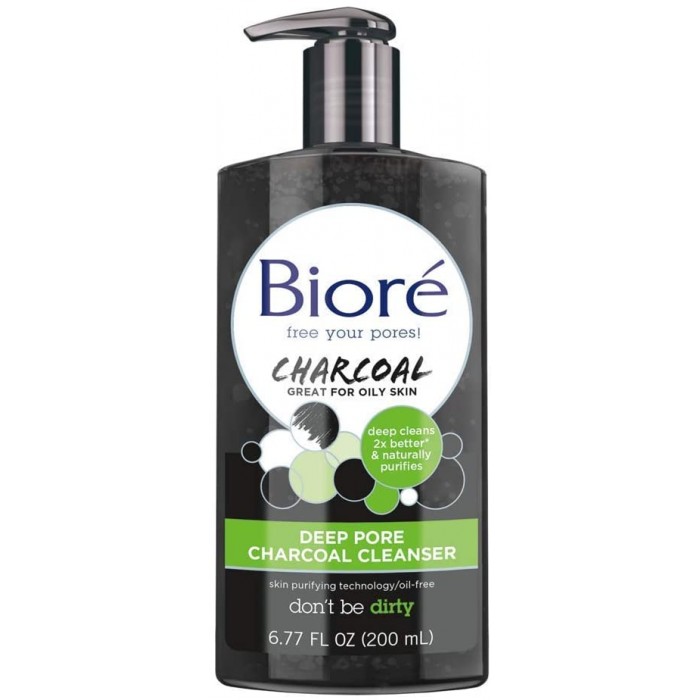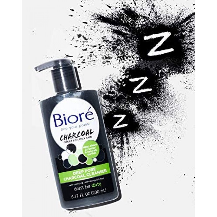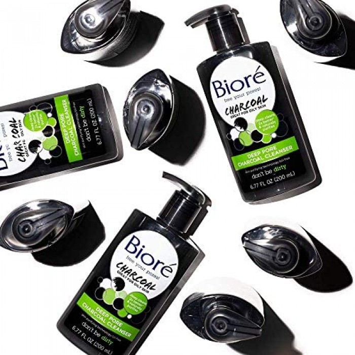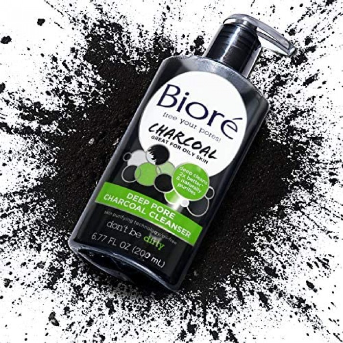 Biore charcoal cleanser draws out and traps 2x more dirt and impurities than a basic cleanser, purifying pores to leave your face cleaned. It is oil-free and suitable for oily skin.