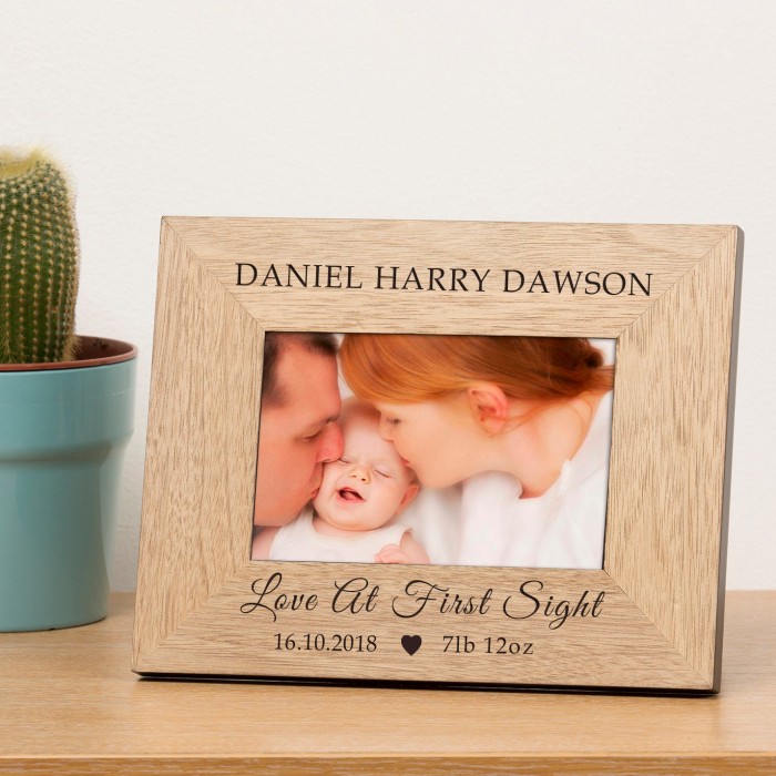 Personalised Newborn Love At First Sight Photo Frame Gift Keepsake Engraved Birth New Born Baby Christening