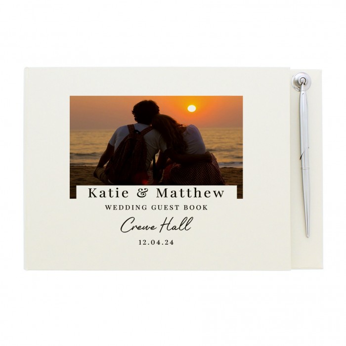 Personalised Photo Upload Hardback Guest Book & Pen, Wedding Guest Book