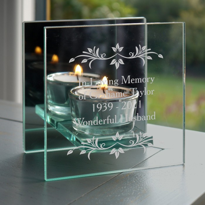 Personalised Sentiments Mirrored Glass Tea Light Holder , In Memory, Memorial Gift, Remembrance Gift, RIP Gift, Memorial Candle