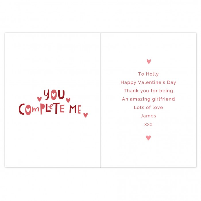Personalised Valentine's Day Card, You Complete Me, Greeting Card, Card For Girlfriend or Boyfriend