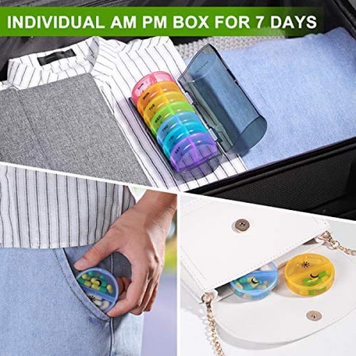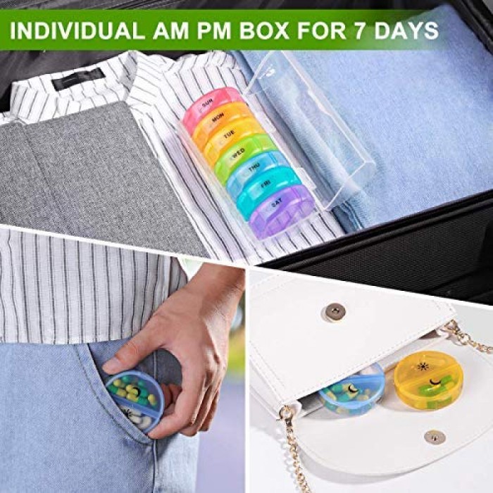 - MOISTURE-PROOF DESIGN: Drugs should be kept away from dampness, or there will be a breeding ground for bacterias. You could find the inner daily pill boxes with exclusive moisture-proof design.