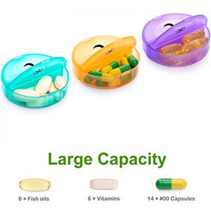 - ONE DAY ONE BOX: 7 individual round boxes with 2 compartments, it means you can take 1 or more days with you freely. Each daily box can hold up to 6 fish oils or 14 capsules.
