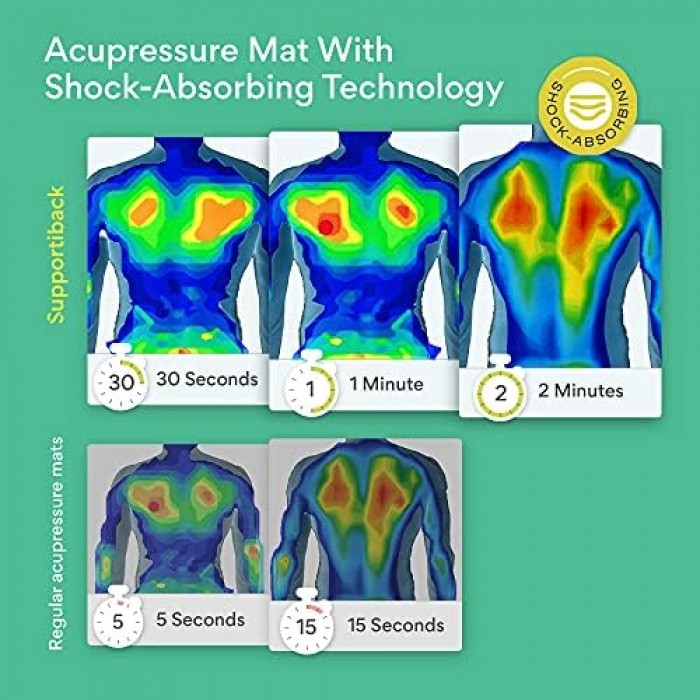 - Developed with Acupuncturists: Relieve back and neck tension and reduce stress with our acupressure mat and cushion. Our set features targeted therapy points that mimic authentic acupuncture. 96% said that their back discomfort improved after lying on our mat for 10-15 minutes daily.