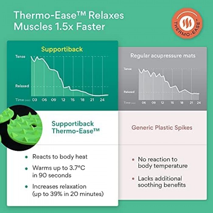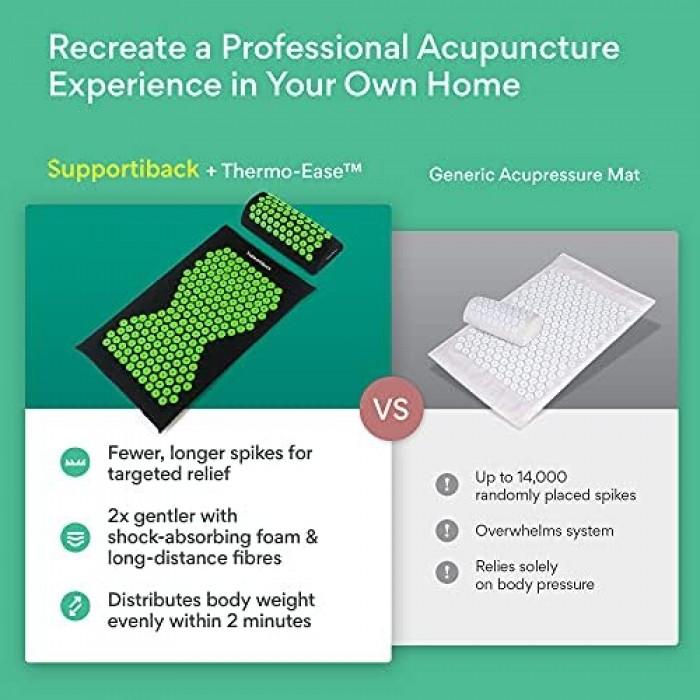 - 3x The tension relief : Other mats are too small. Ours follows the body’s contours to support your entire back, while our acupressure pillow alleviates neck discomfort. Tension is reduced by up to 67% with our mat’s 2,160 therapy points, which target all 12 pressure points in the back and neck.