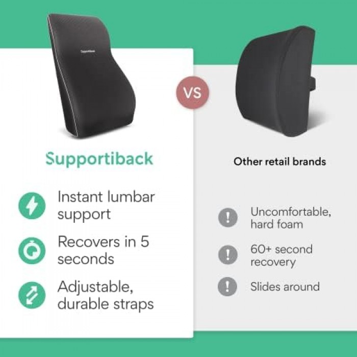 Supportiback Back Support Chair Cushion, Lasting Comfort Lumbar Support Cushion, Office Chair Back Support Cushion, Car Seat Cushion, Back Pillow, Back Support for Office Chair