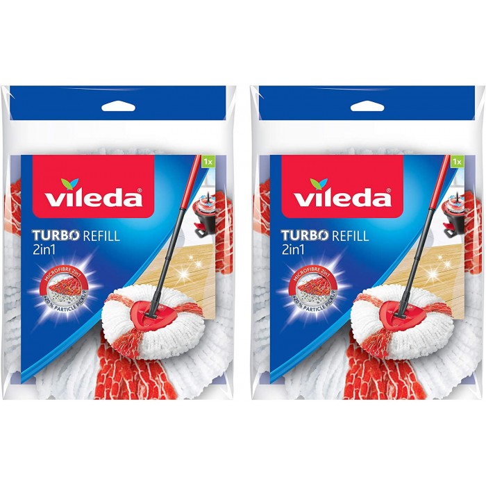 The vileda easy wring and clean turbo 2-in-1 refill combines the utmost cleaning performance and absorbency of the white microfibres with the particle pick up of the red fibres for the utmost in floor cleaning performance. Easy to remove and machine washable.