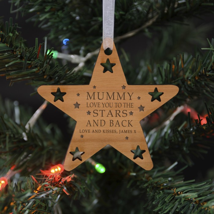 The decoration is engraved with the fixed text "LOVE YOU TO THE STARS AND BACK"